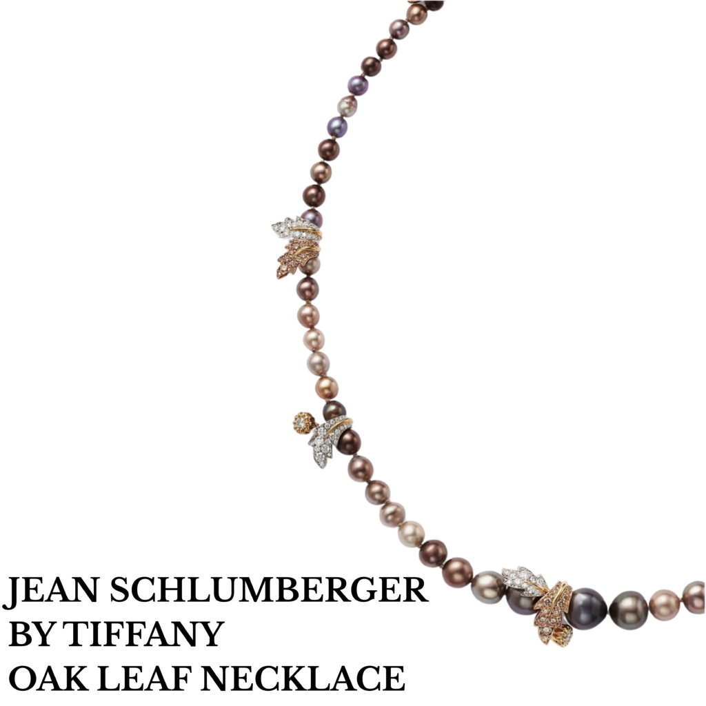 Plus que l’oiseau, la collection capsule Bird on a Pearl rappellent également d’autres motifs emblématiques de Jean Schlumberger, tels que les glands et feuilles de chêne (Acorn et Oak Leaf), les asymétries de la flore (Cascade), et les rubans (Ribbons).