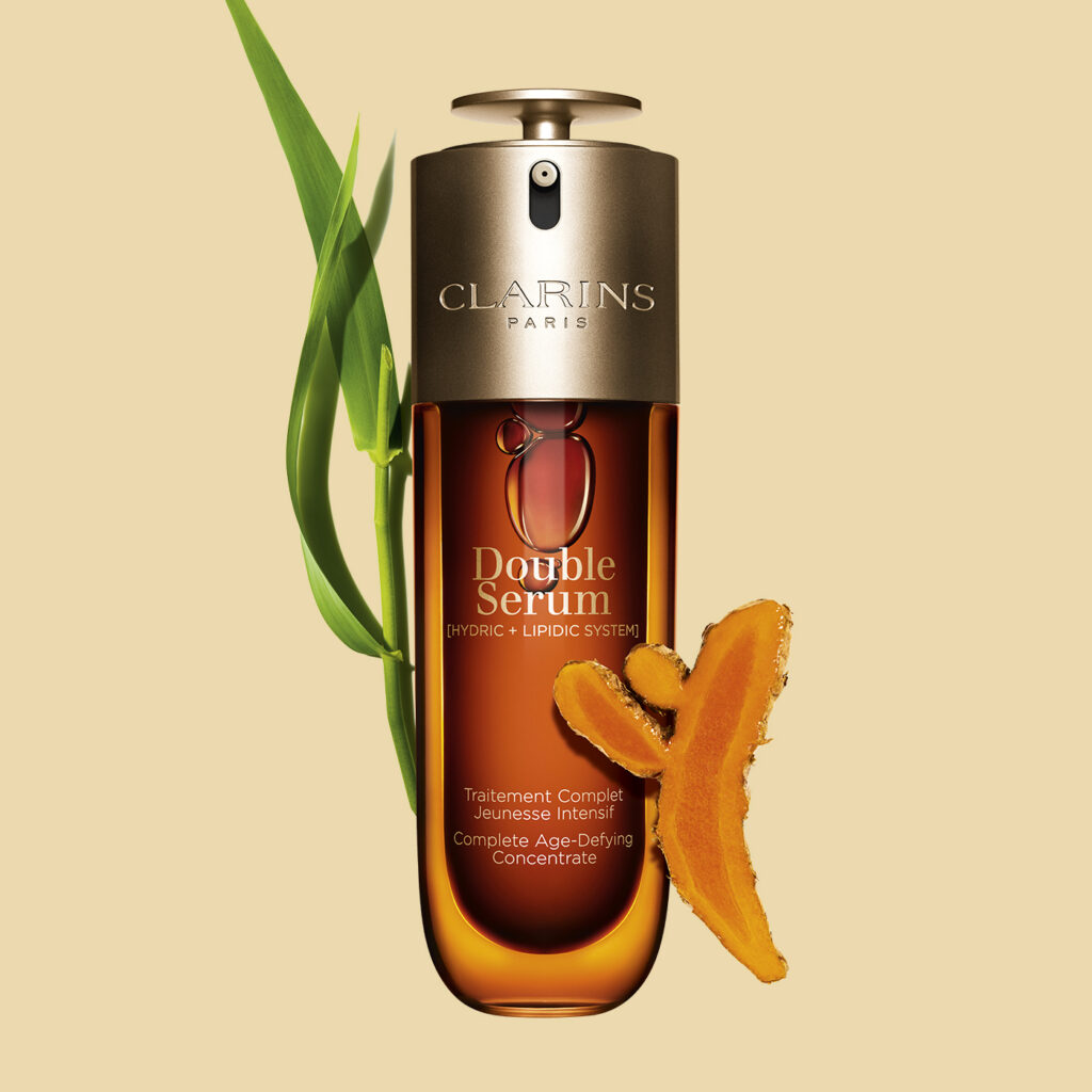Icône Clarins depuis 1985, le Double Serum est un best-seller intergénérationnel. Sa force réside dans une formule inspirée d’un constat issus des dernières avancées en épigénétique: 85 % de notre beauté future dépend de notre mode de vie, contre seulement 15 % liés au temps qui passe. Clarins s’appuie ainsi sur ces découvertes et enrichit sa formule d’un extrait inédit: le grand roseau de Provence bio. Associé au curcuma et à d’autres végétaux puissants, ce soin universel agit comme un anti-âge global.
