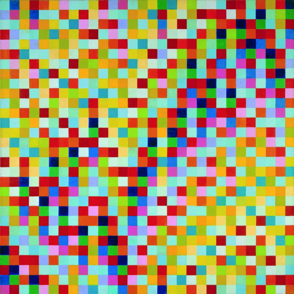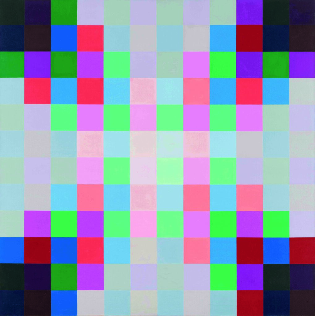 C’est après une carrière de graphiste qu’il abandonne à 40 ans que l’artiste s’intéresse à l’imaginaire constructif-concret. Il est fasciné par l’unité entre la surface picturale et les éléments qui la composent qu’il retrouve dans certaines toiles du mouvement hollandais De Stijl ainsi que chez les constructivistes russes. Richard Paul Lohse développe rapidement sa propre vision et se tourne vers une abstraction basée sur des moyens d’expression rigoureux répondant à la série et à la répétition, formant ainsi dans ses toiles des ondes colorées vibrantes qui ne sont naturellement pas le fruit du hasard. En effet, ses grilles colorées se conforment à des systèmes précis dans lesquels les champs de couleurs carrés et rectangulaires interagissent entre eux selon des règles mathématiques. L’œuvre de cet artiste hors norme est fondée sur la raison et donc explicable de manière rationnelle, c’est pour cela qu’il se plaisait à dire, par provocation sans doute: «Je pourrais facilement envoyer mes œuvres par téléphone».